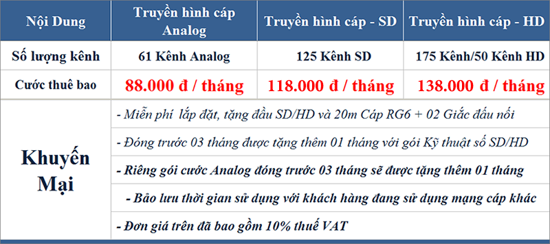 Bảng Giá Truyền Hình Cáp Và Internet VTVcab